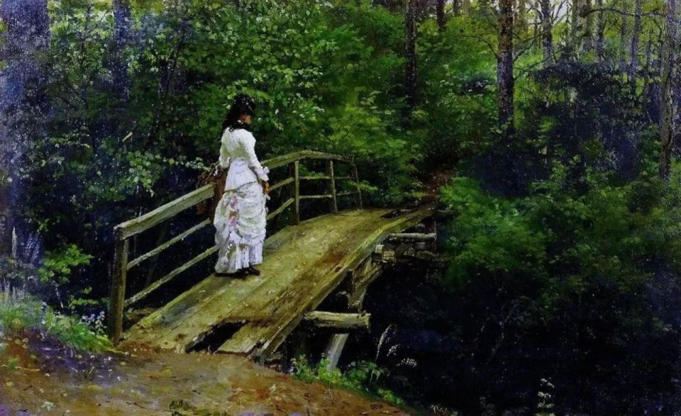 * Летний пейзаж (В. А. Репина на мостике в Абрамцеве). 1879. Государственный музей изобразительных искусств им. А. С. Пушкина, Москва