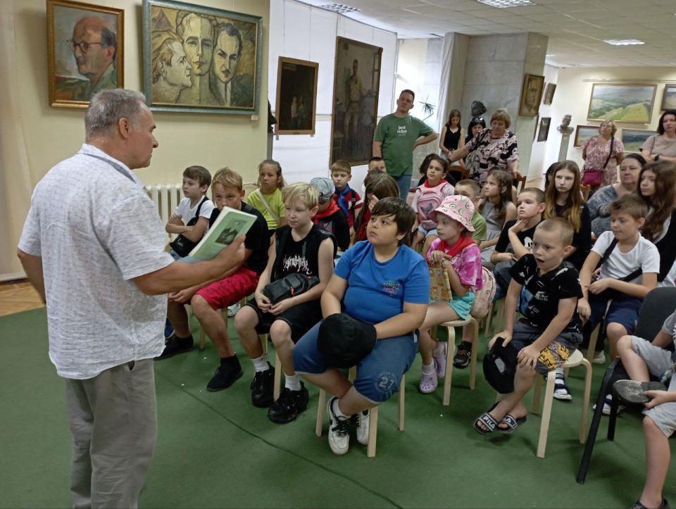 В рамках встречи прошли поэтические чтения и экскурсия по мощной картине Домненко Григория «Ритуал возле р. Миус», отражающей мужество и стойкость защитников нашего края.