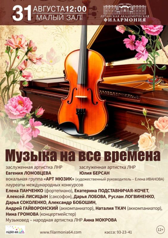 31 августа в 12:00 (малый зал) – камерный концерт «Музыка на все времена».