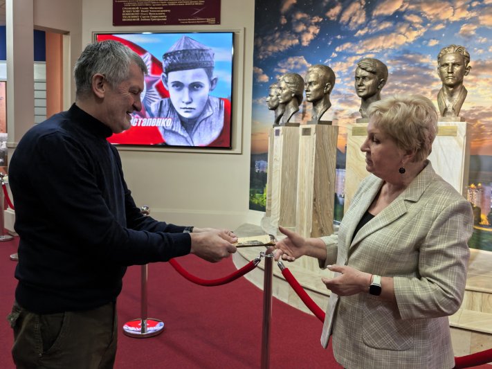 Журнал «Родина» передал в дар учреждению раритетное издание — книгу «Новое о героях Краснодона», выпущенную в 1959 году в Библиотеке «Комсомольской правды».