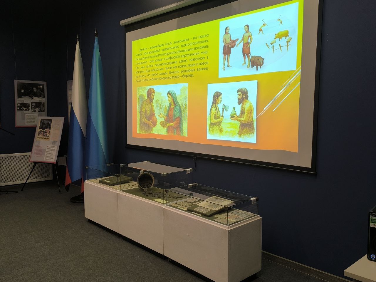 Организаторы проследили всю эволюцию денег — от древнейших форм обмена (скот, меха) до современной системы. Были представлены местные археологические находки, включая сарматский клад, свидетельствующий о связях региона с античным миром. Экскурс в историю охватил «меховые деньги» Руси, монеты Золотой Орды, реформы от Елены Глинской до Петра I, а также полную историю российских банкнот.
