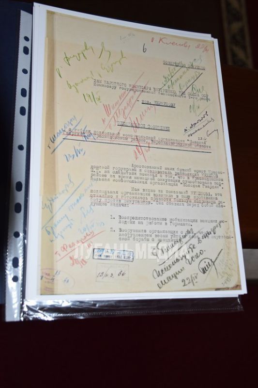 Коллекция Краснодонского музея «Молодая гвардия» пополнилась уникальными рассекреченными документами, переданными УФСБ по ЛНР
