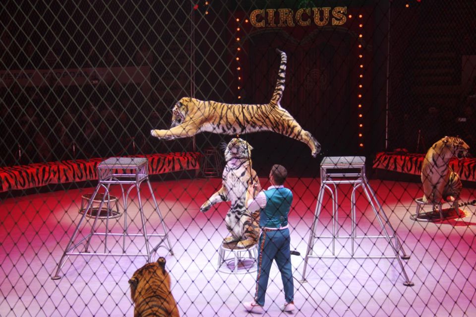 На арене Донецкого цирка «Космос» зрителям впервые показали программу «Тигры на земле и в воздухе» Ярослава Запашного. Три премьерных представления собрали аншлаг, приняв более 4000 человек.