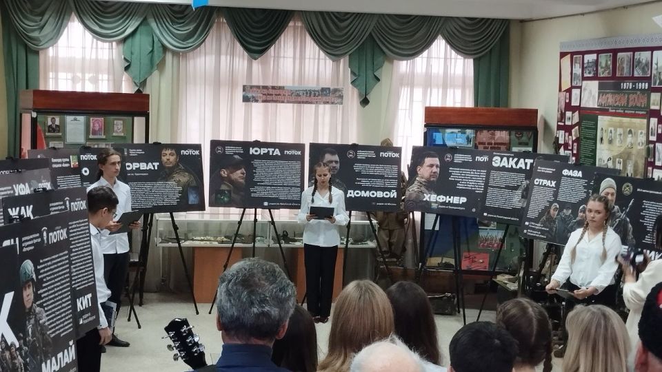 Экспозиция включает более 30 планшетов с фотографиями и рассказами бойцов — участников операции «Поток» из отдельной разведывательноштурмовой бригады «Ветераны», 30го мотострелкового полка 72й дивизии, 11й гвардейской десантноштурмовой бригады ВДВ, спецназа «Ахмат» и штурмовой бригады «Восток».