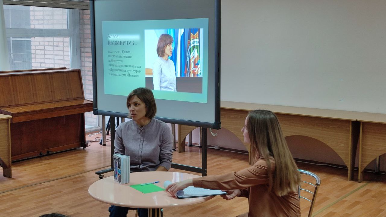Гостья приняла участие в рубрике «Интервью с интересным человеком», ответила на вопросы молодежи в формате «Вопросы от гостя» и оставила послание для будущих поколений в «капсуле времени». Центральной частью вечера стало чтение авторских стихов о любви, надежде, природе и войне. Алеся также рассказала о своем победе в проекте «Проводники культуры».