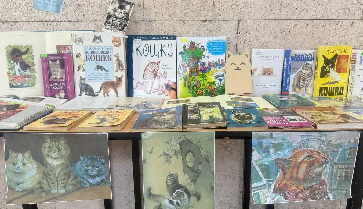 Помимо фоторабот, посетители могут познакомиться с книгами из фонда библиотеки, главными героями которых стали пушистые питомцы.