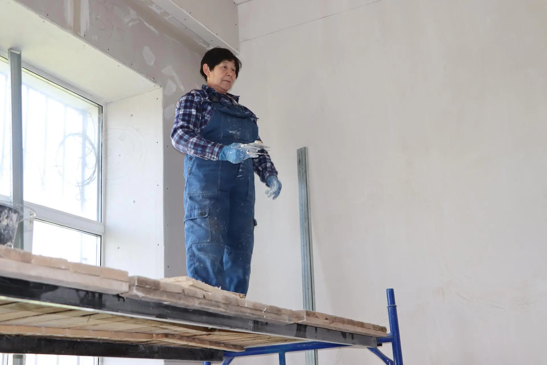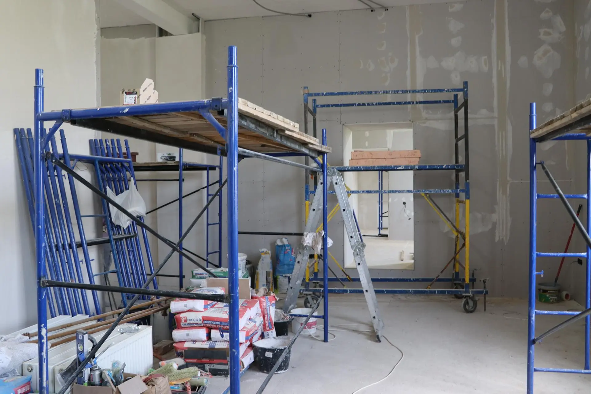 Подрядчики выполняют работы согласно утверждённому графику. На данный момент смонтированы новые системы электроэнергии и отопления, завершена обшивка стен гипсокартонным каркасом. Специалисты приступили к нанесению декоративной штукатурки. В планах — укладка линолеума, монтаж подвесного потолка типа «Армстронг», установка современных светильников, зеркал и хореографического станка. Завершающим этапом станет окраска стен.