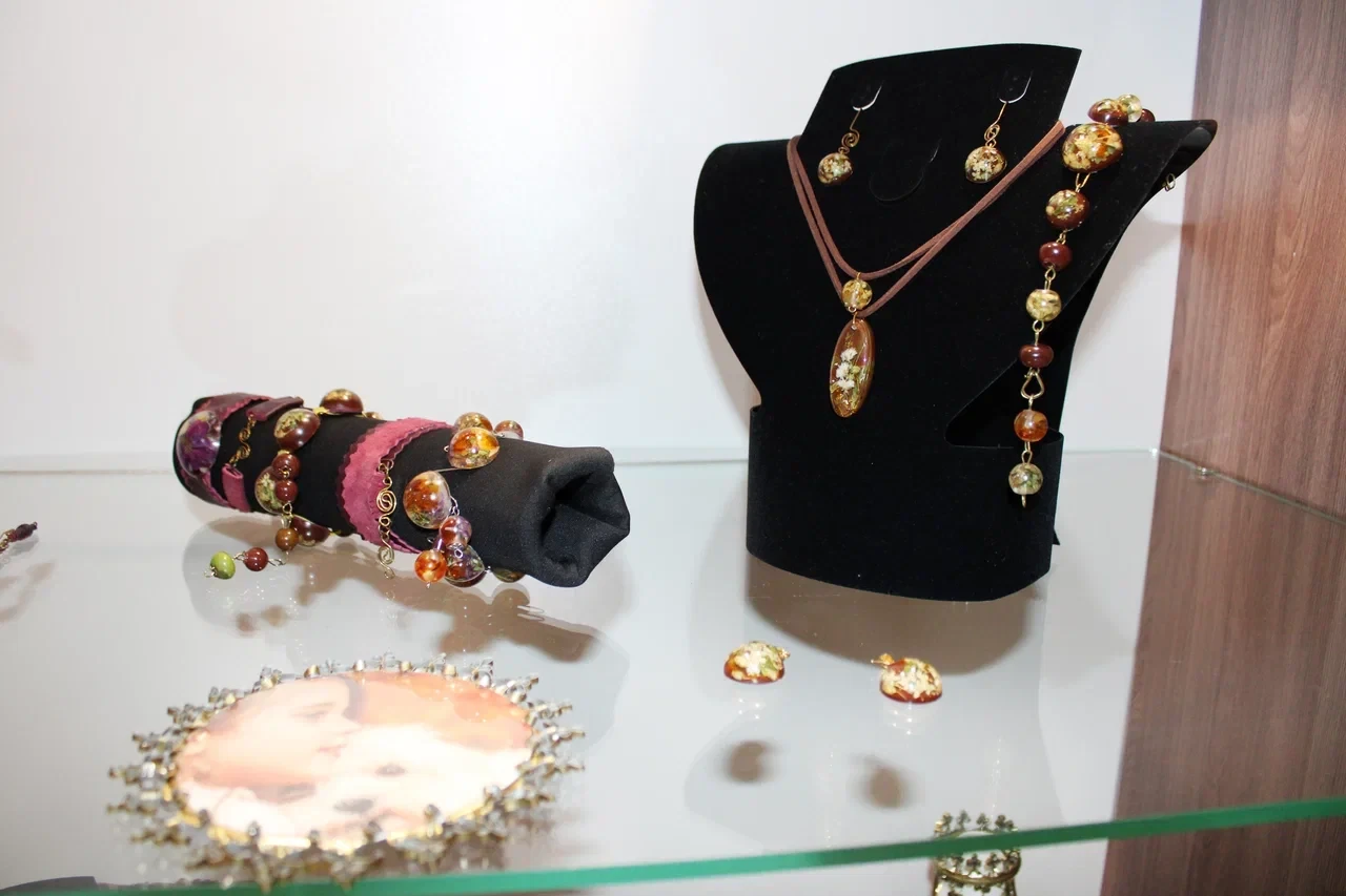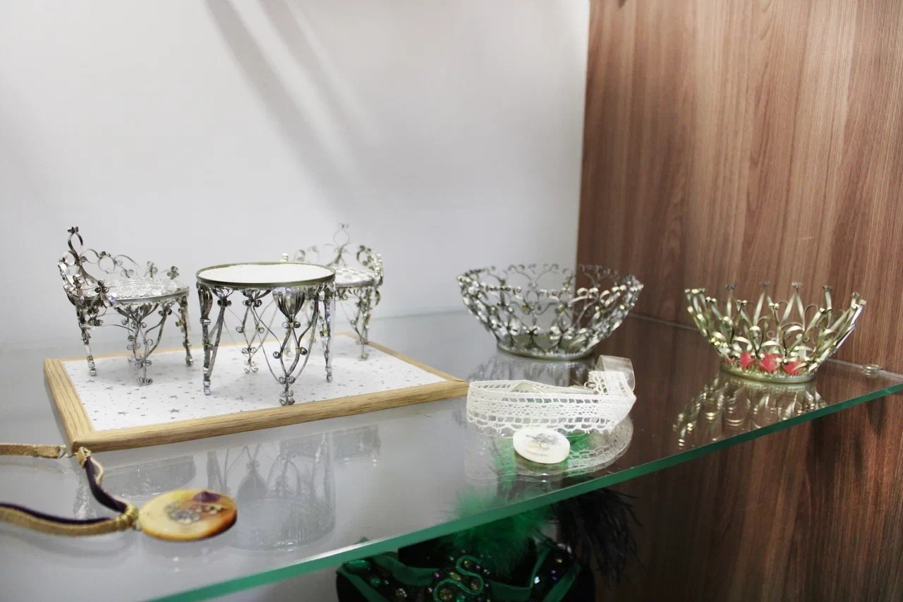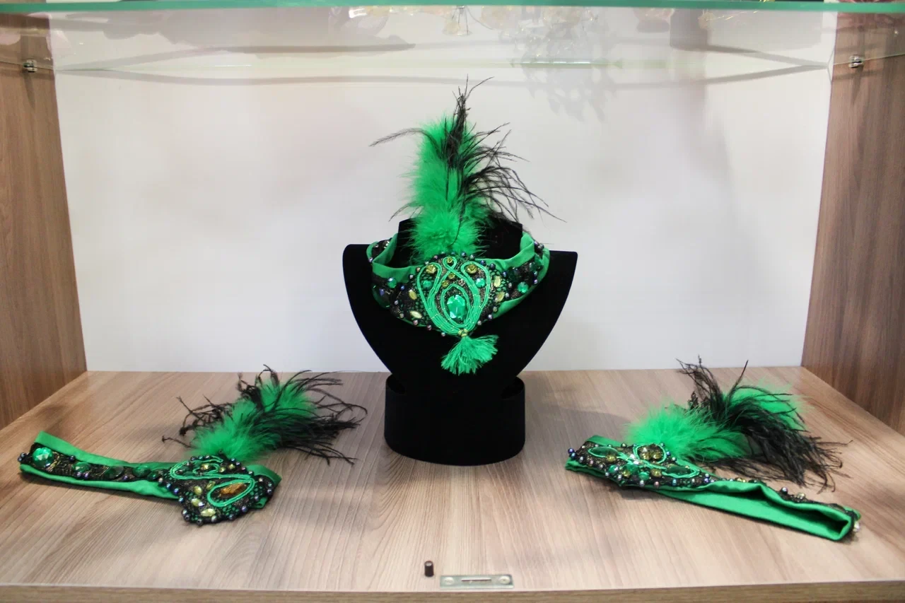 В экспозиции — головные уборы, ставшие частью сценических костюмов «Рондо» (ручная работа Оксаны Борисовны), валяные вещи, костюмы, игрушки в разной технике, украшения и изделия из эпоксидной смолы, а также объёмные металлические композиции из жестяных банок.