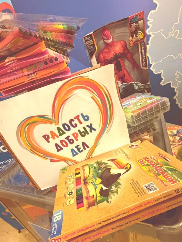 Коробки с игрушками, развивающими играми и канцтоварами для детей собрали сотрудники Минпромторга ЛНР.