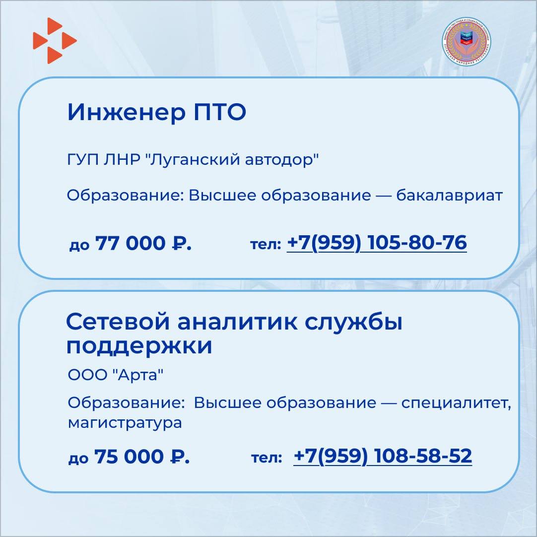 Предлагаем ознакомиться с некоторыми вакансиями в наших карточках.
