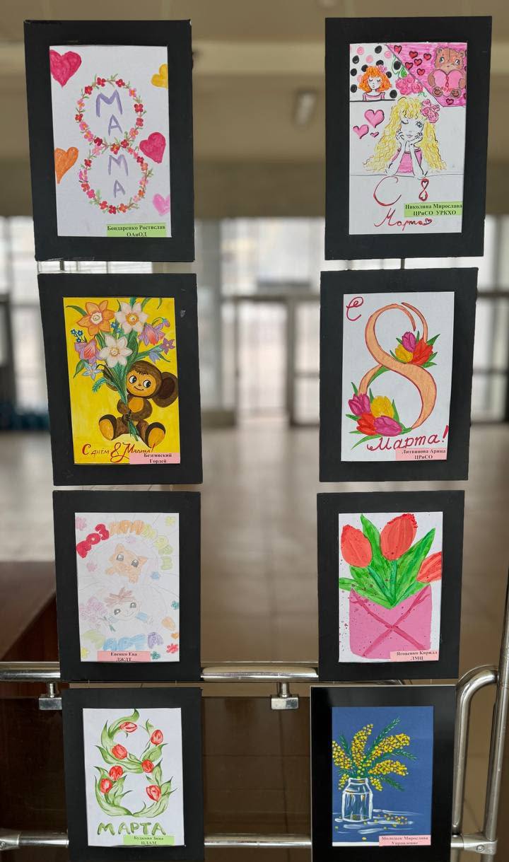 Дети сотрудников АМК подготовили к - марта трогательный подарок - выставку своих рисунков.