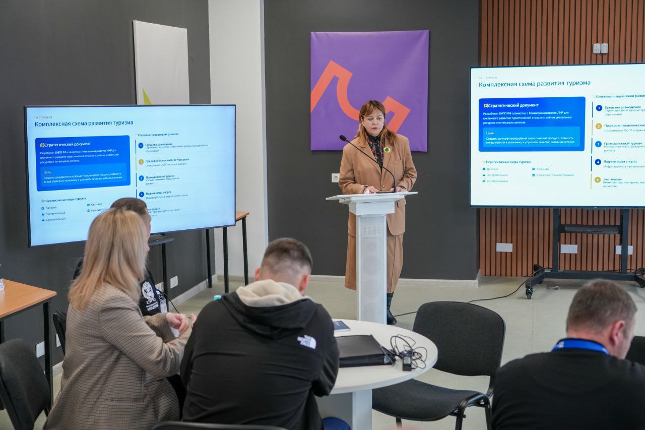 В рамках текущего этапа обучения перед финалистами кадрового проекта выступила Министр экономического развития ЛНР Анна Уголкова. В своей лекции на тему «Развитие малого и среднего предпринимательства в ЛНР» она подробно остановилась на федеральных и региональных мерах поддержки, которые способствуют росту предпринимательской инициативы в регионе.