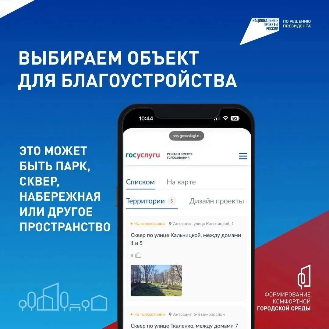 Успей принять участие в голосовании и выбрать территорию для благоустройства через Госуслуги!