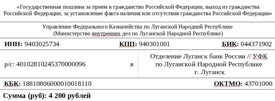 Реквизиты госпошлины за приём в гражданство РФ изменятся в ЛНР с 1 августа