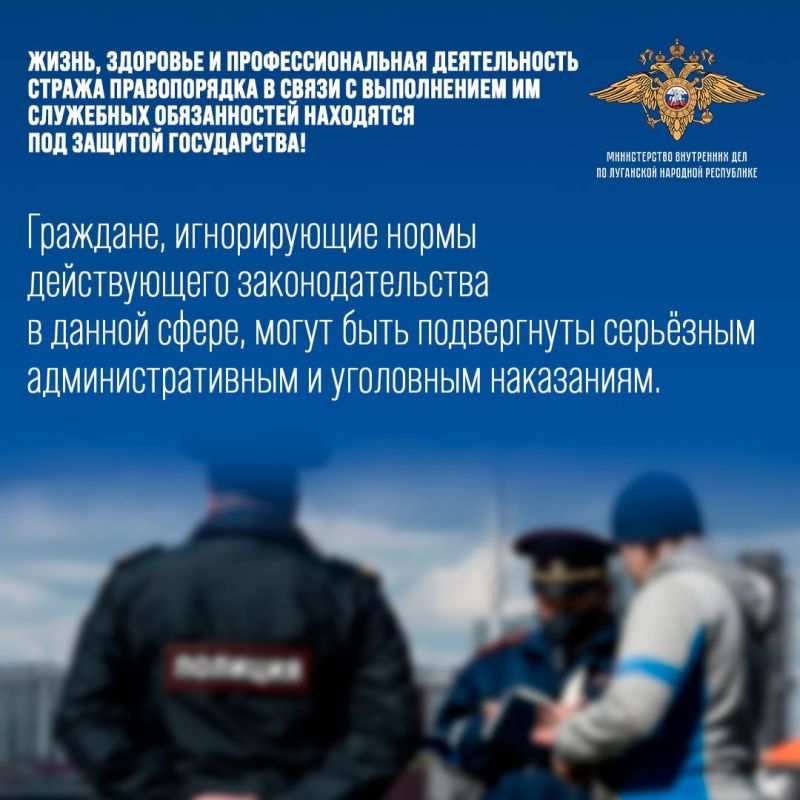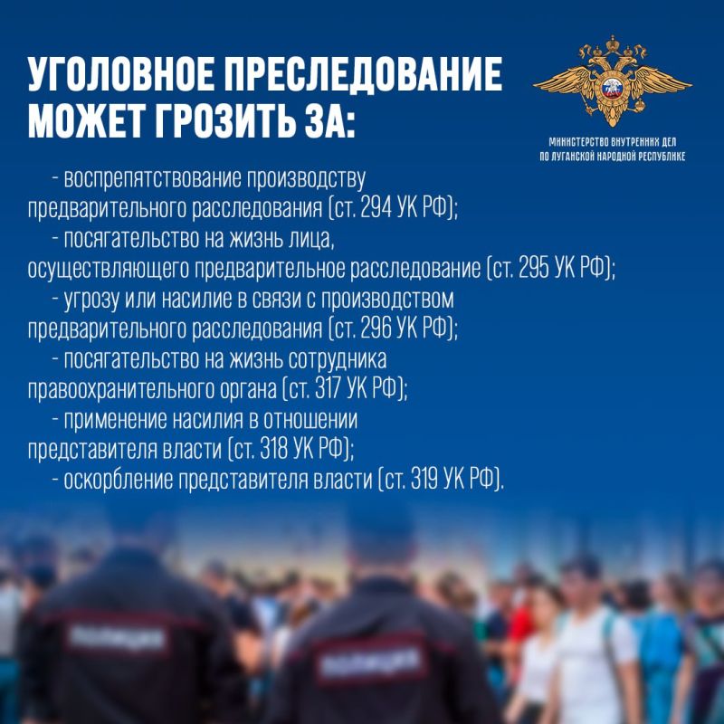 МВД по Луганской Народной Республике предупреждает граждан об ответственности за неповиновение и применение насилия в отношении сотрудника органов внутренних дел