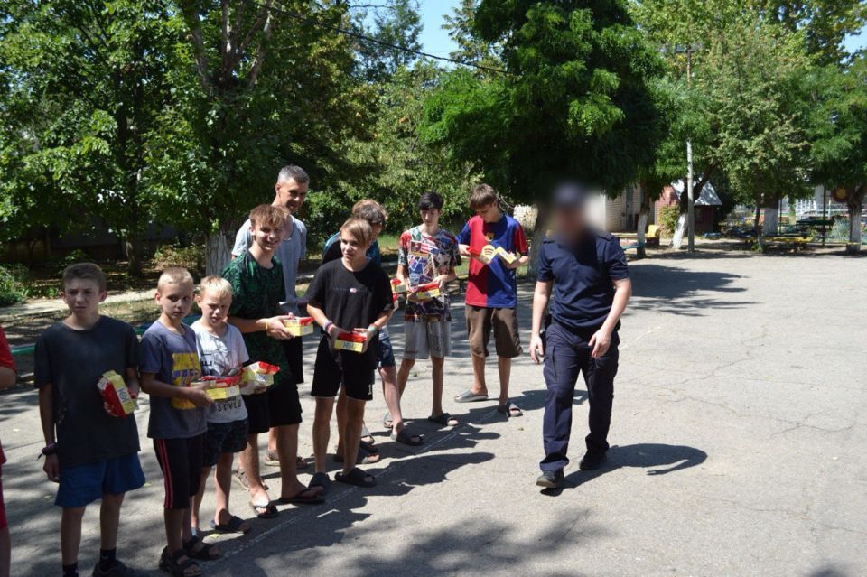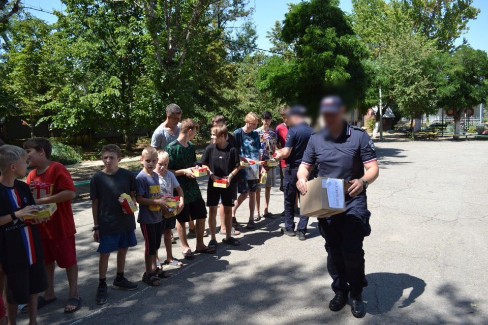 Мальчишки и девчонки получили сладости, школьную канцелярию и другие необходимые для подрастающего поколения вещи.