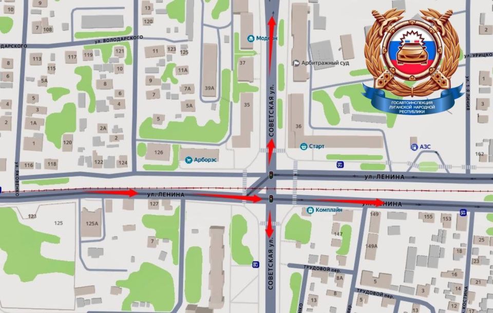 С 7 августа 2025 года изменилась работа светофорного объекта на пересечении улиц Советская и Ленина г. Луганска.