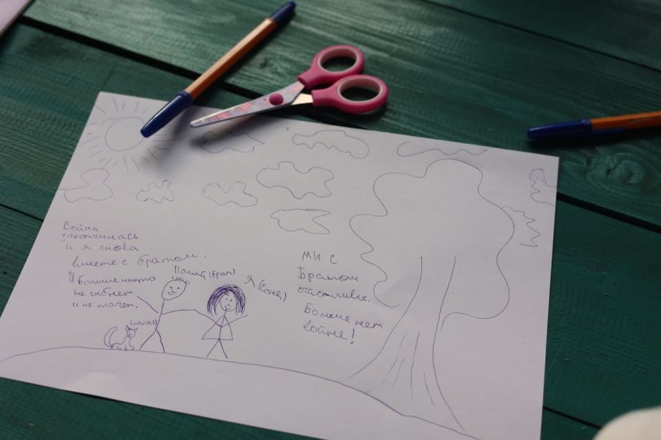 «Будущее делать вам. Так или иначе от каждого из вас зависит, что будет дальше. Интересно, как вы видите общее наше с вами будущее, каким будет оно после победы, о чём мечтаете именно вы?» – продолжила мероприятие представитель Народного фронта, дав старт творческому мастер-классу, в рамках которого мальчишки и девчонки цветными фломастерами на белых листах бумаги нарисовали то, о чём каждый из них мечтает сегодня и каким видит своё счастливое будущее.