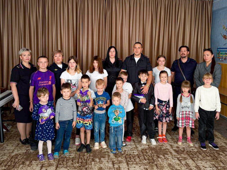 Кроме этого, правоохранители организовали для детворы весёлые игры и конкурсы, а завершился визит полицейских вручением подарков мальчишкам и девчонкам.