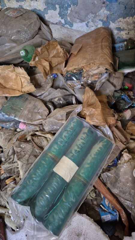Прибывшие на место сотрудники территориального отдела полиции оцепили территорию, после чего изъяли следующие опасные находки: