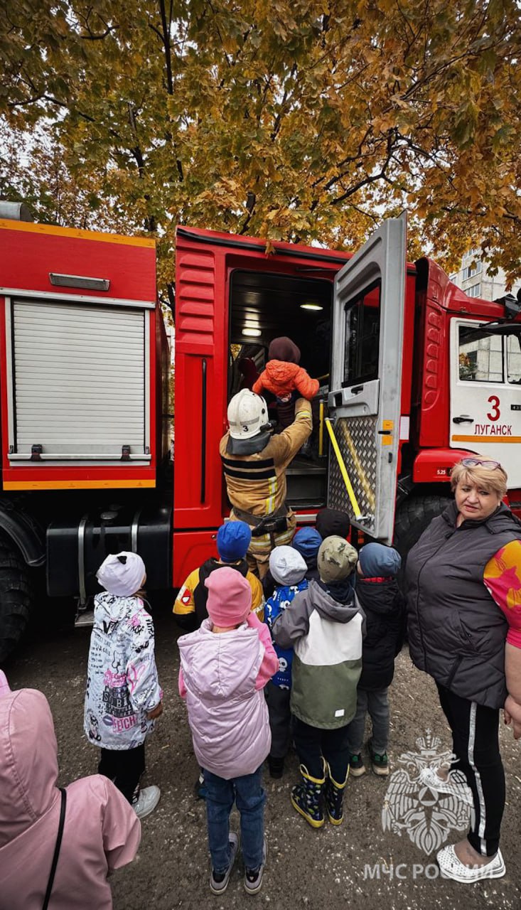 Спасатели МЧС России в рамках "Дня гражданской обороны" провели профилактическое мероприятие для сотрудников и воспитанников ГБДОУ ЛНР «Ясли-сад № 59 Звездочка».