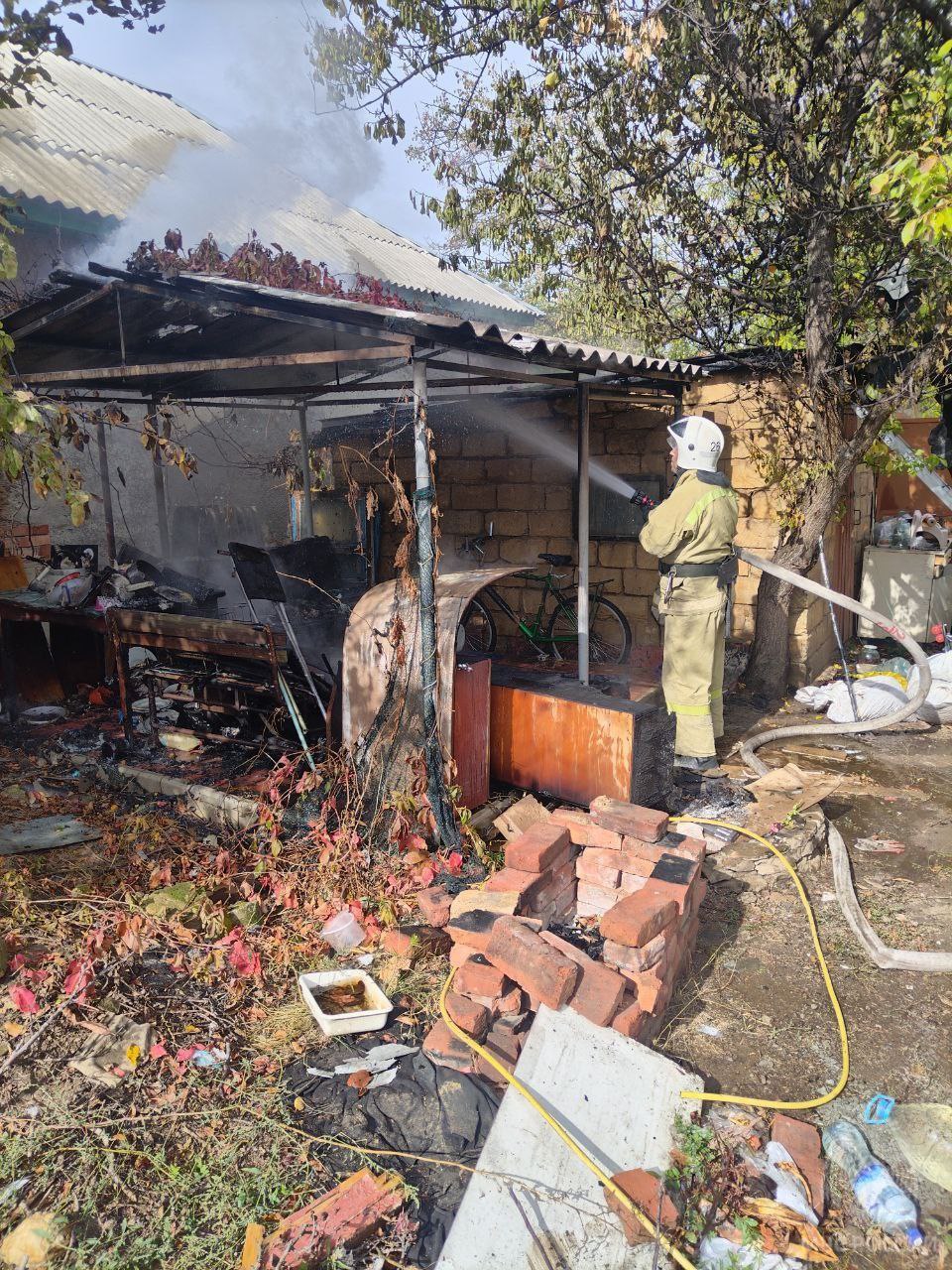 На этот момент горела крыша беседки. Очаг находился в месте расположения электрической лампочки. Огонь перекинулся на стоявший внизу диван и различный хлам. Возникла угроза рядом стоящему жилому дому в соседнем подворье.