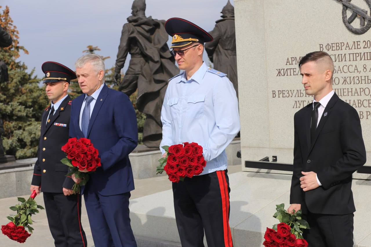 В церемонии возложения цветов к мемориалу также приняли участие начальник Управления по работе с личным составом регионального правоохранительного ведомства полковник полиции Сергей Буркин и заместитель председателя региональной организации общества «Динамо» в Луганской Народной Республике Андрей Куришко.