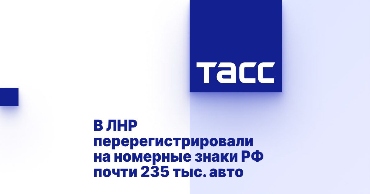 Отделения МРЭО Госавтоинспекции МВД по Луганской Народной Республике с 2022 года перерегистрировали на номерные знаки российского образца почти 235 тыс. автомобилей. Об этом сообщил начальник МРЭО Сергей Гонтарев.