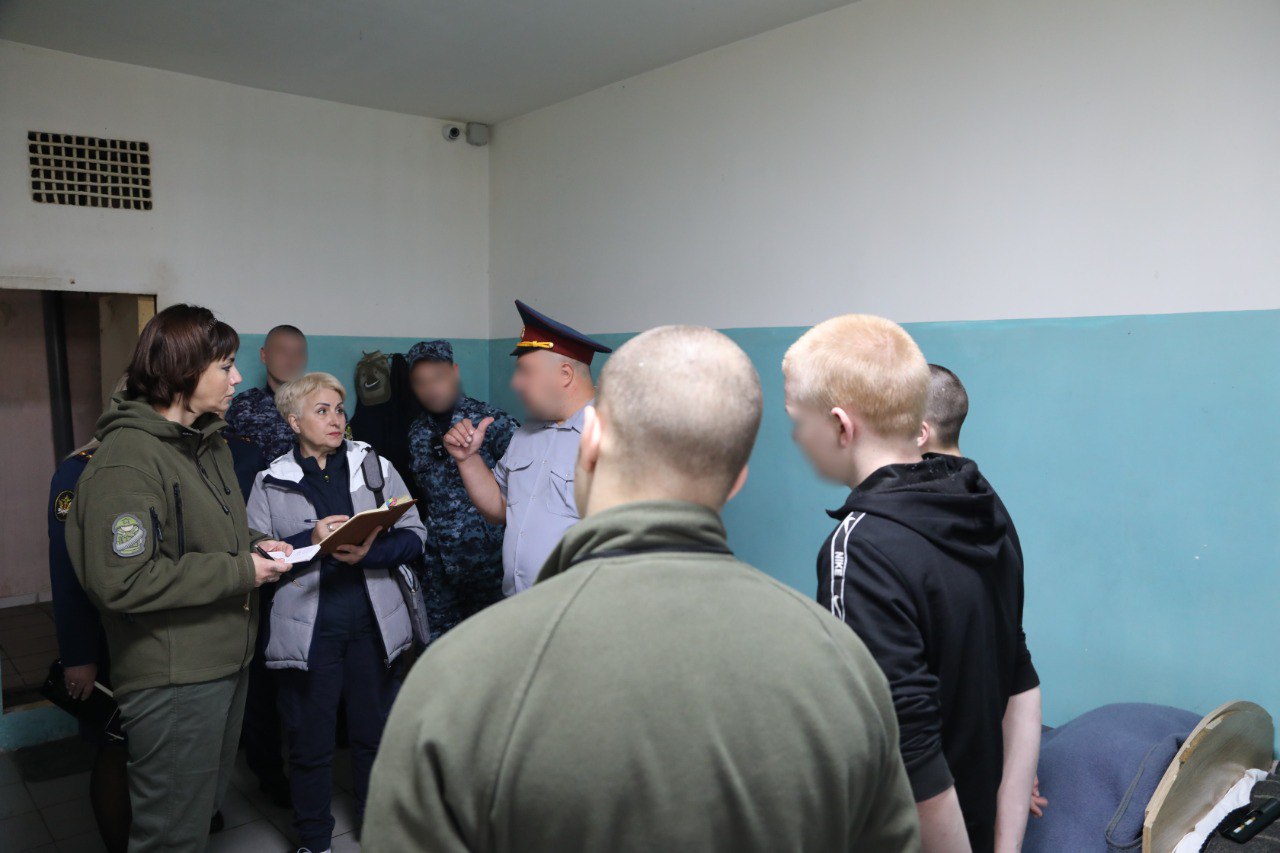 В сопровождении сотрудников группы по соблюдению прав человека в уголовно-исполнительной системе регионального Управления и руководства следственного изолятора был совершен осмотр столовой, цеха по приготовлению пищи, медицинских кабинетов, а также помещений, где содержатся обвиняемые, подозреваемые и осужденные, в том числе несовершеннолетние. Кроме этого, было обращено внимание на наличие стендов, где размещена необходимая информация для находящихся под стражей граждан.