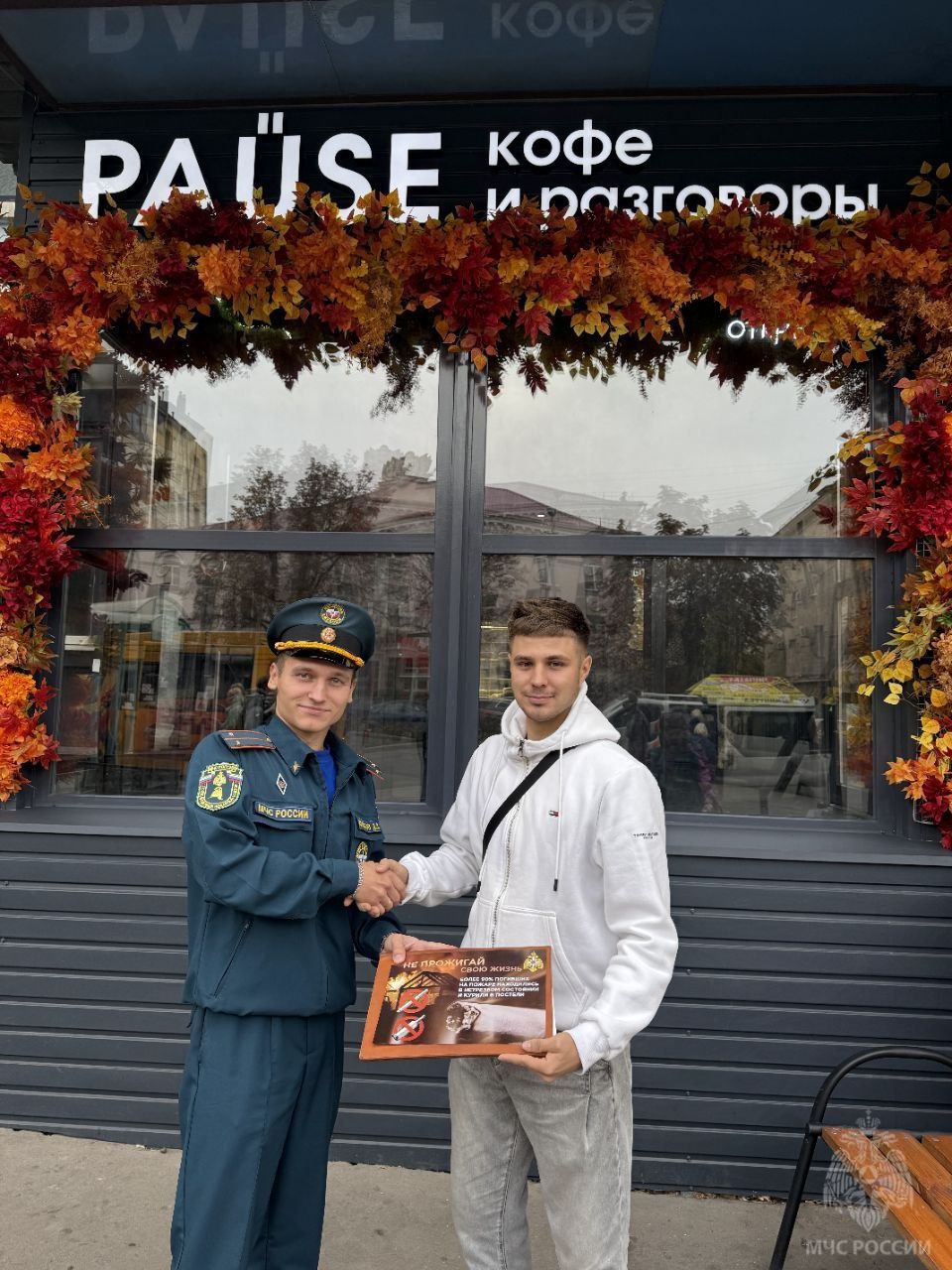 Посетителей кафе сотрудники чрезвычайного ведомства призывали всегда быть осторожными и внимательными в местах массового пребывания людей, где риск возникновения возгораний всегда высок, особенно в выходные и праздничные дни. Заодно людей информировали о том, как избежать возгораний в быту и на рабочих местах.