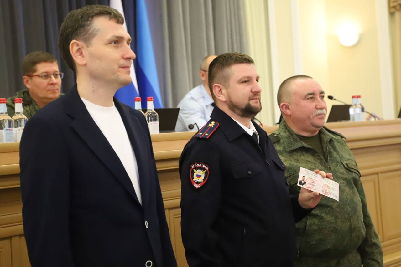 «Благодаря оказанному представителями Министерства обороны содействию, всем, кто участвовал в боевых действиях на территории нашей республики, в том числе был участником специальной военной операции, подтвердили статус ветерана боевых действий. Особые слова благодарности за оказанную помощь хочу выразить Юрию Корсачёву, Валентину Клюжеву и Антону Оганину», – начал торжественное мероприятие заместитель Министра внутренних дел по Луганской Народной Республике генерал-майор полиции Александр Корниенко.