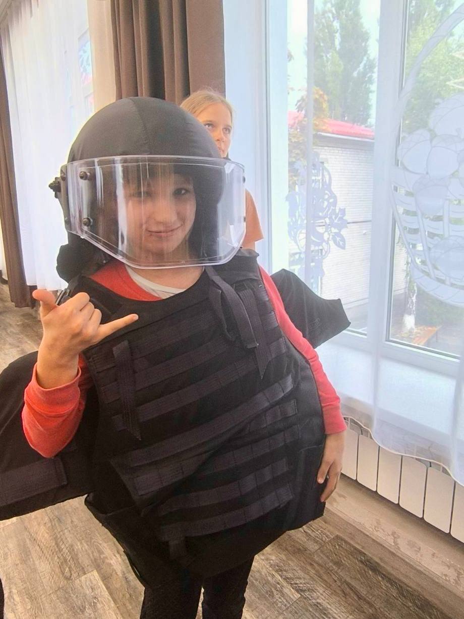 Особо заинтересовал ребят чемоданчик взрывотехника с самыми необходимыми для работы эксперта предметами. Шлем и бронежилет – также привлекли внимание юных жителей региона, никто из них не упустил возможность примерить защитную амуницию и сделать на память несколько кадров.