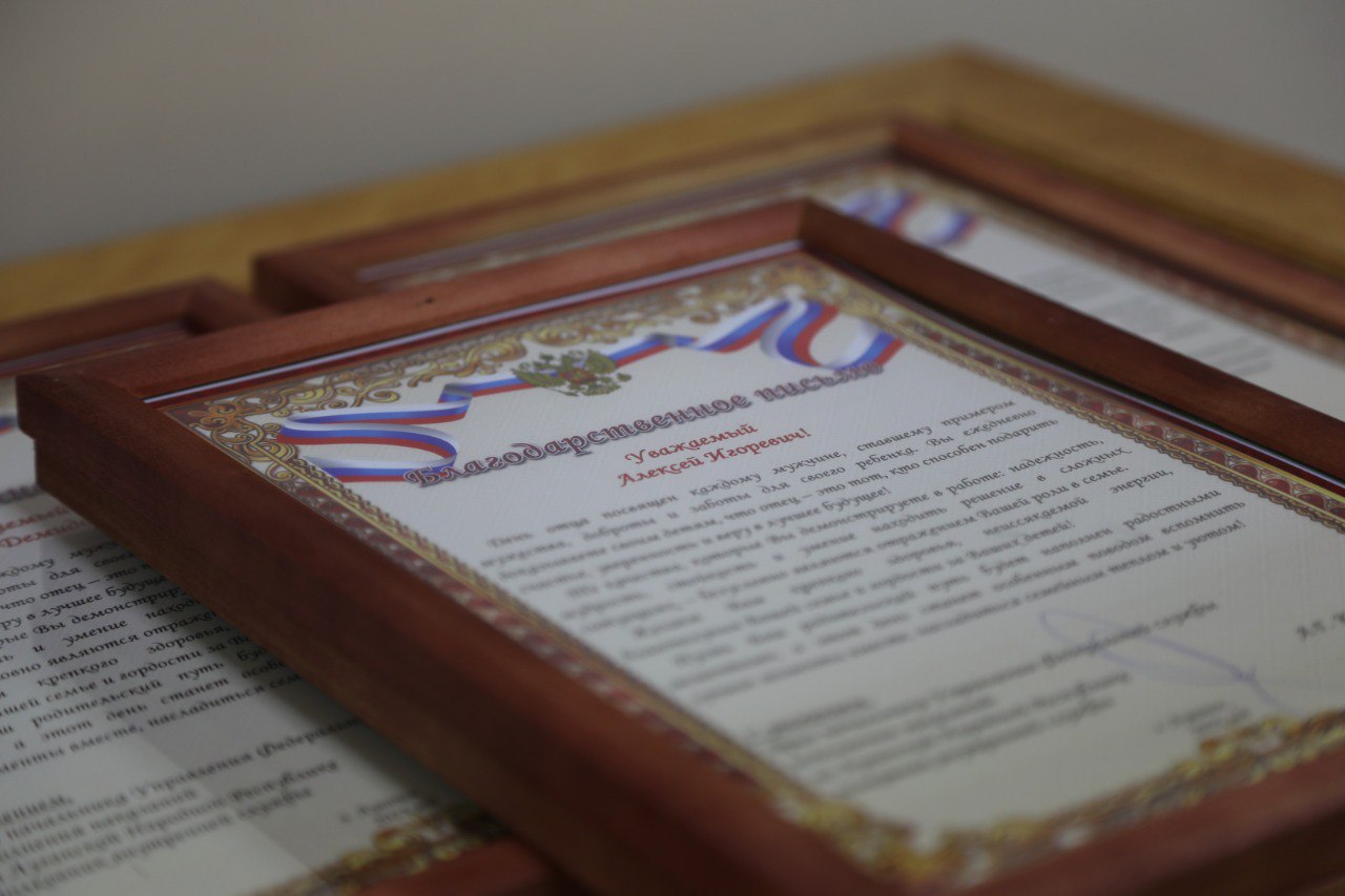 В преддверии праздника, по инициативе руководства Управления многодетным отцам и отцам, самостоятельно воспитывающим детей, вручили благодарственные письма.