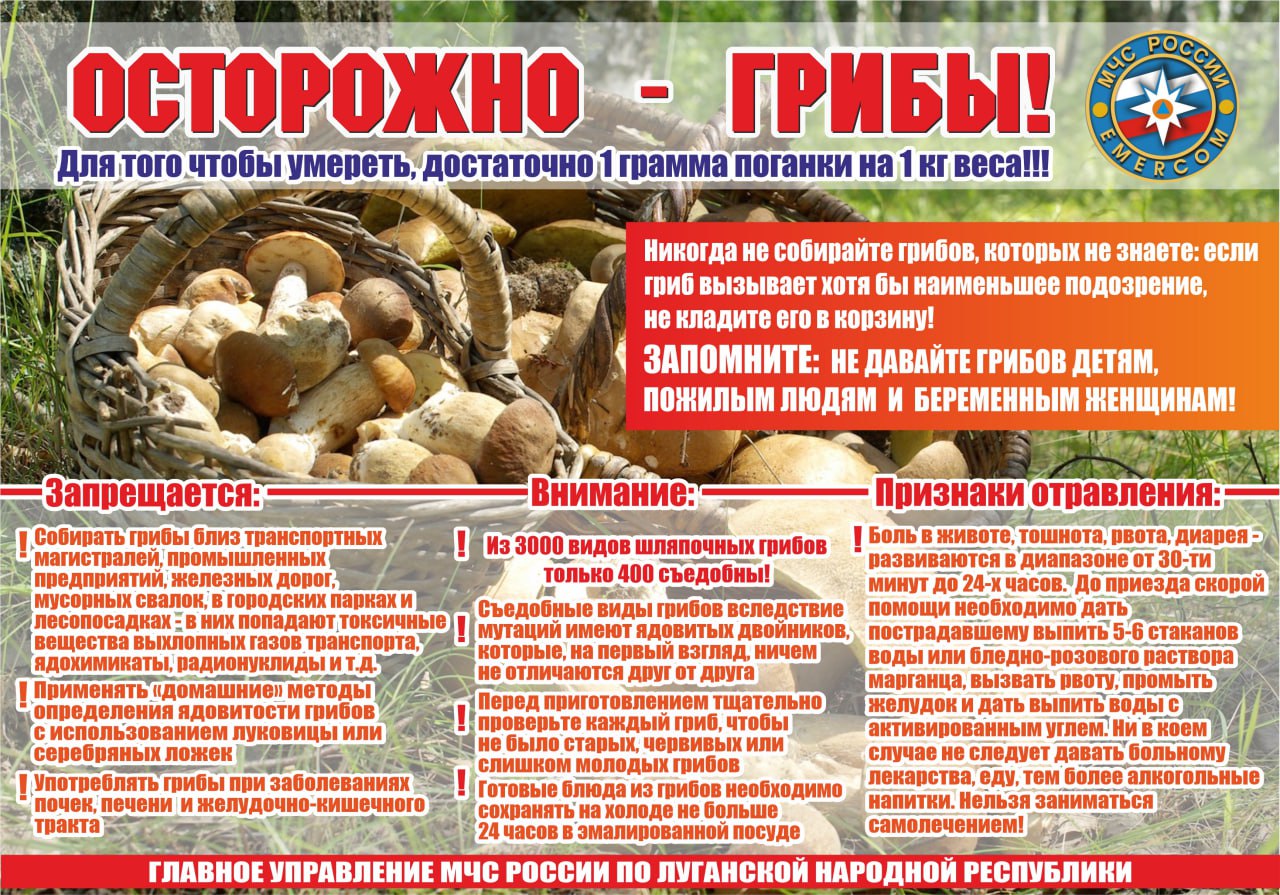 В связи с началом грибного сезона Главное управление МЧС России по ЛНР призывает граждан соблюдать крайнюю осторожность при сборе и употреблении грибов.