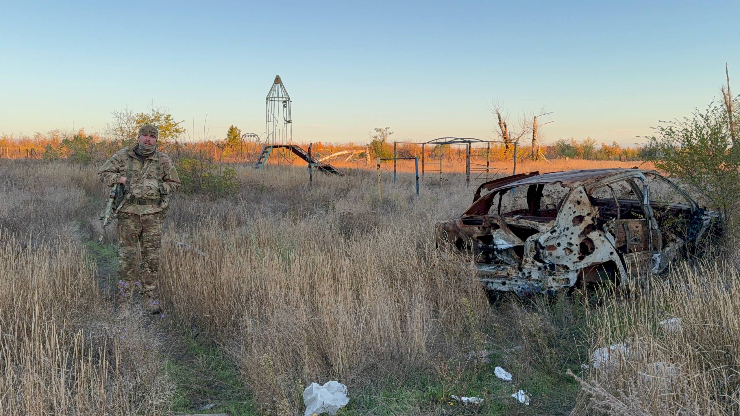 — Вчера заходил со стороны полей, сзади пытались на нас пройти, метров 20, наверное, упал, разорвался. И здесь один тоже проходил, там видны разрывы. Я вот этой штукой работаю, напарник стрелкотней страхует.