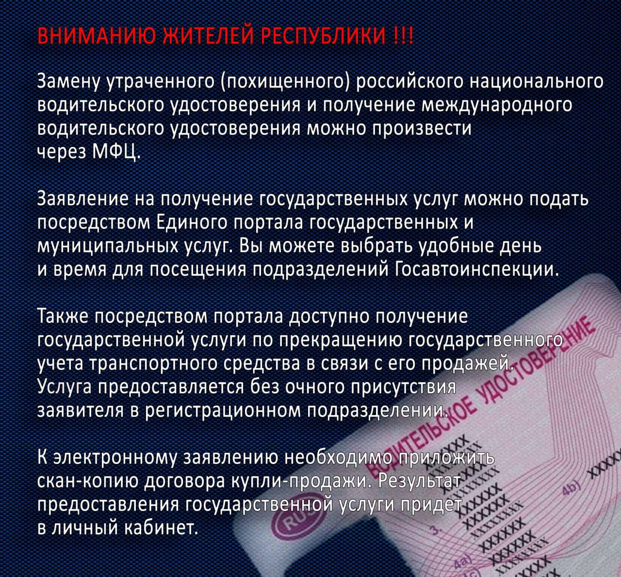 Жители республики могут лично обратиться в МРЭО по вопросам замены регистрационных документов и государственных номерных знаков транспортных средств, а также водительских удостоверений, либо через портал «Госуслуги».
