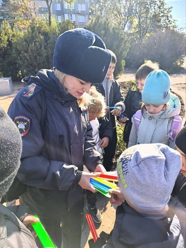 Под чутким руководством автоинспекторов, юные помощники рассказали ребятам важность использования световозвращающих элементов в темное время суток и раздали световозвращающие браслеты.