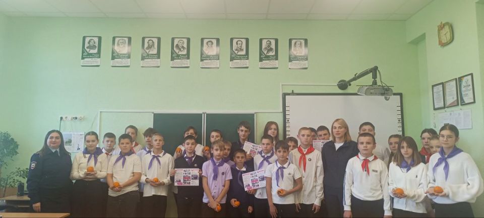 Сотрудники полиции рассказали будущим коллегам – школьникам из 7-го и 8-го классов – о становлении правоохранительных органов в Российской Федерации и истории российской полиции.