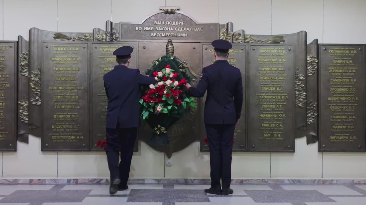 В памятную дату в холле МВД возложили цветы к мемориальной доске, на которой навечно выгравированы имена тех, кто мужественно и самоотверженно служил Закону и защищал сограждан, заплатив за это самую высокую цену – жизнь.