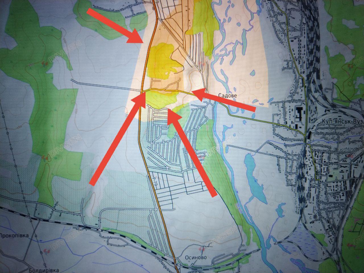 Учитывая, что основное снабжение плацдарма на левом берегу р. Оскол у противника висело на 2-х переправах (в районе Садового и Осиново), расположенных на 3-километровом участке, выход наших подразделений к первой, ставит под угрозу и вторую. Дальнейшее наше продвижение к переправе в районе Осиново и установление полного контроля над переправой в районе Садового для противника на плацдарме очень критично. Особенно, учитывая наше продвижение в Куриловке, за которую также идут ожесточённые бои.