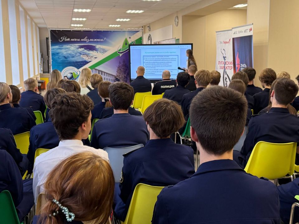 По случаю Всероссийского Дня правовой помощи детям для учащихся кадетского класса Луганского учебно-воспитательного комплекса имени лётчика-космонавта Берегового в стенах учебного заведения провели просветительское мероприятие, направленное на повышение осведомлённости в области защиты прав ребёнка. Спикеры, которыми выступили представители регионального МВД – старший инспектор по особым поручениям отделения воспитательной работы отдела морально-психологического обеспечения Управления по работе с личным составом старший лейтенант полиции Иван Аляпкин и старший оперуполномоченный отдела по противодействию экстремистским организациям и объединениям Центра по противодействию экстремизму старший лейтенант полиции Елисей Кочержин, а также старший инспектор по делам несовершеннолетних ОМВД России «Ленинский» капитан полиции Виталий Терещенко разъяснили школьникам их права и обязанности.