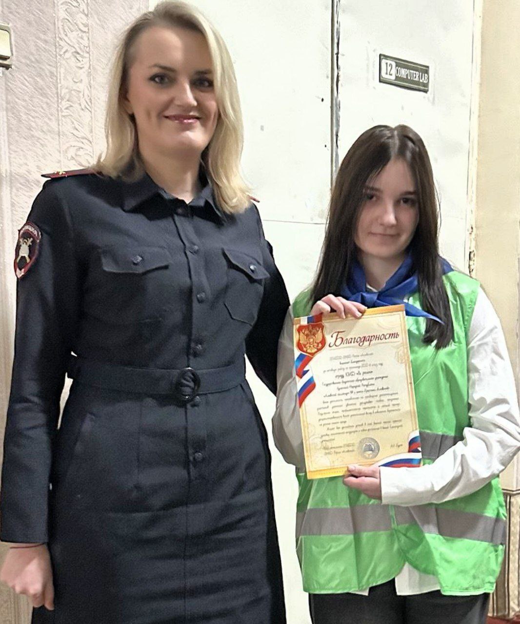 Также инспектор поблагодарила юных инспекторов движения отряда «81 регион» за активную работу в прошедшем году и вручила членам отряда ЮИД заслуженную благодарность.