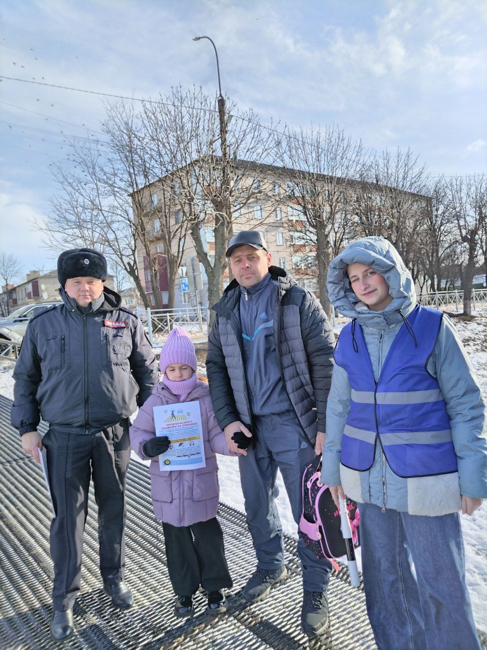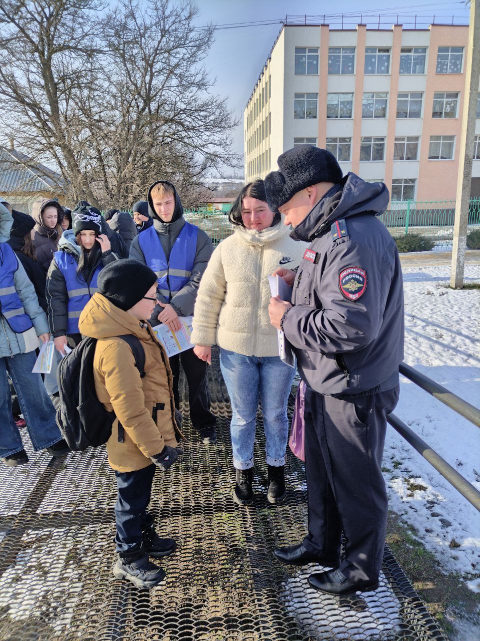 Особое внимание уделялось юным пешеходам. Ребята из отряда ЮИД вручали детям листовки с правилами ПДД и пожеланиями безопасного пути, а сотрудники Госавтоинспекции проводили с ними разъяснительные беседы.