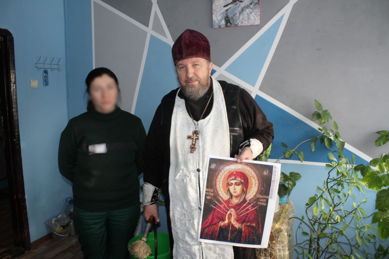 В свою очередь, содержащиеся под стражей женщины подарили представителю духовенства вышитую семистрельную икону, которая служит напоминанием верующим, что Матерь Божия всегда оберегает их в жизненных испытаниях.
