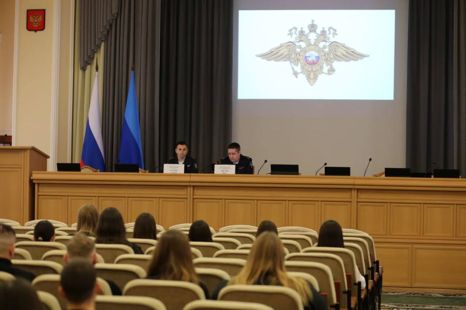 Начальник Управления по работе с личным составом МВД по Луганской Народной Республике полковник полиции Сергей Буркин подробно рассказал о структуре МВД по Луганской Народной Республике, основных направлениях деятельности различных подразделений и возможностях для профессионального развития молодых специалистов. Также правоохранитель отметил, что именно сейчас, в период прохождения практики, формируется профессиональное мировоззрение будущего сотрудника полиции.