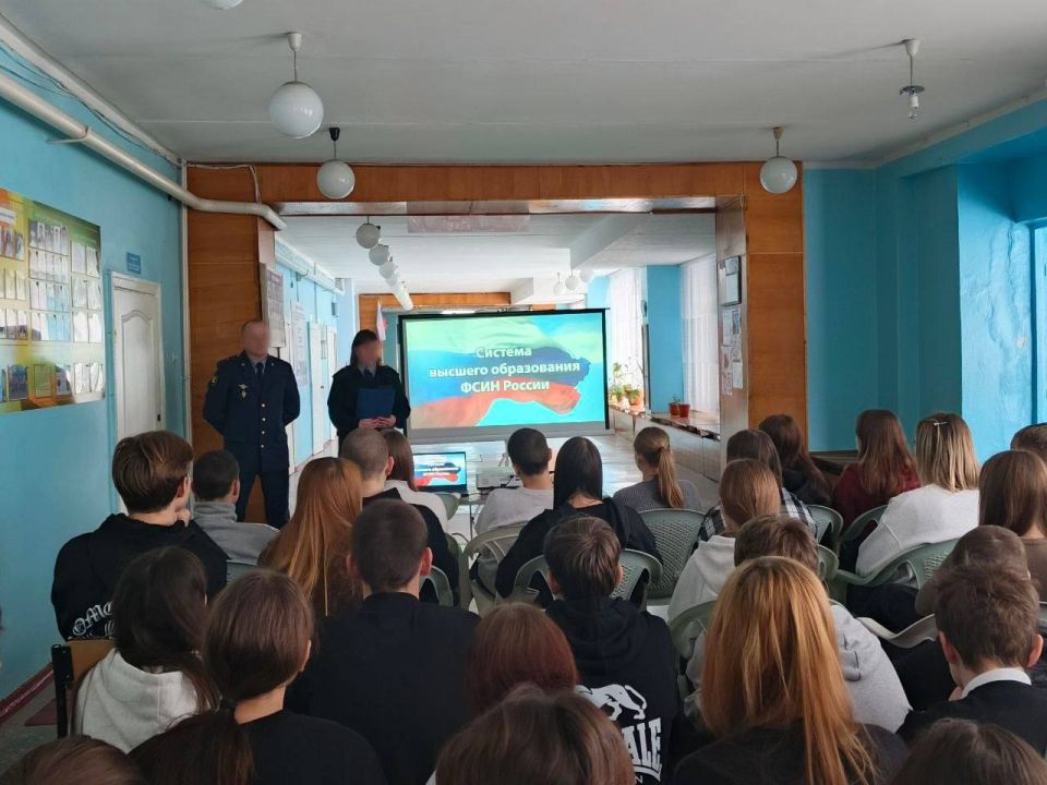 В рамках профориентационной работы, направленной на поступление выпускников школ в высшие учебные заведения ФСИН России, заместитель начальника ИК № 4 регионального УФСИН посетил Суходольскую среднюю школу № 5, а представители отдела кадров и работы с личным составом совместно с начальником психологической лаборатории ИК № 5 – учащихся Молодогвардейской СШ № 21.