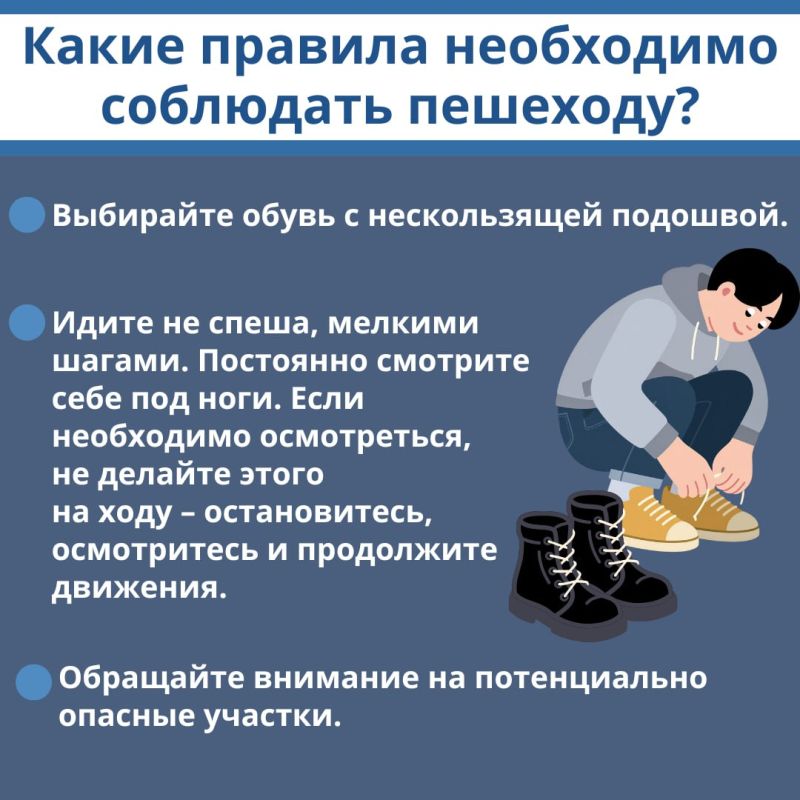 Чтобы ваш день прошел без травм и аварий, напоминаем вам о простых но очень важных правилах во время гололёда.