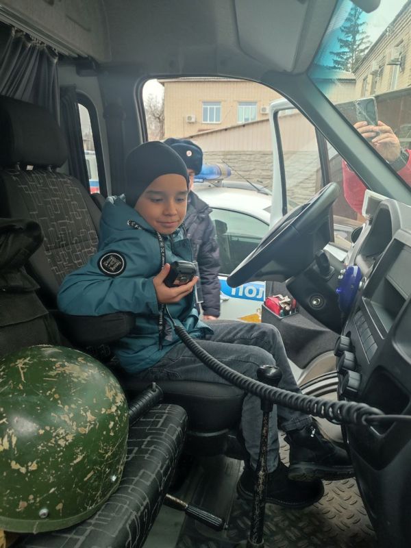 Егор не только получил свой долгожданный подарок, но и побывал на экскурсии по отделу полиции – мальчику и его отцу стражи порядка из территориального подразделения органов внутренних дел показали спецавтомобиль и средства защиты, которые полицейские используют каждый день.