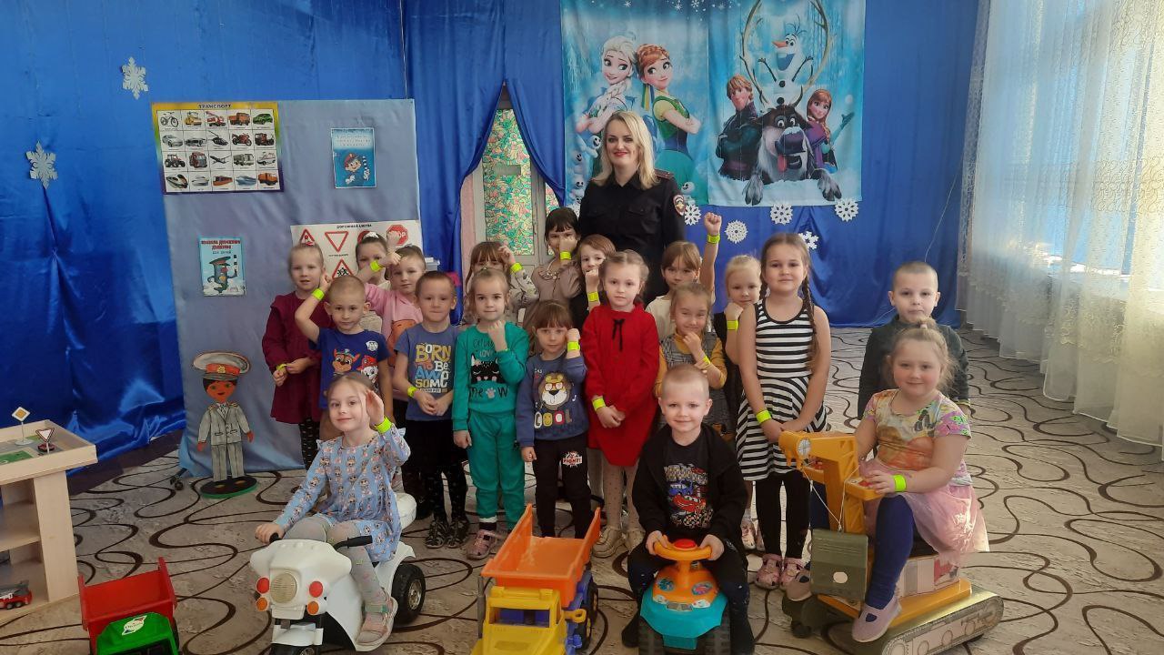 Сотрудники ОГИБДД ОМВД России Алчевский посетили воспитанников детского сада 29 Солнышко.