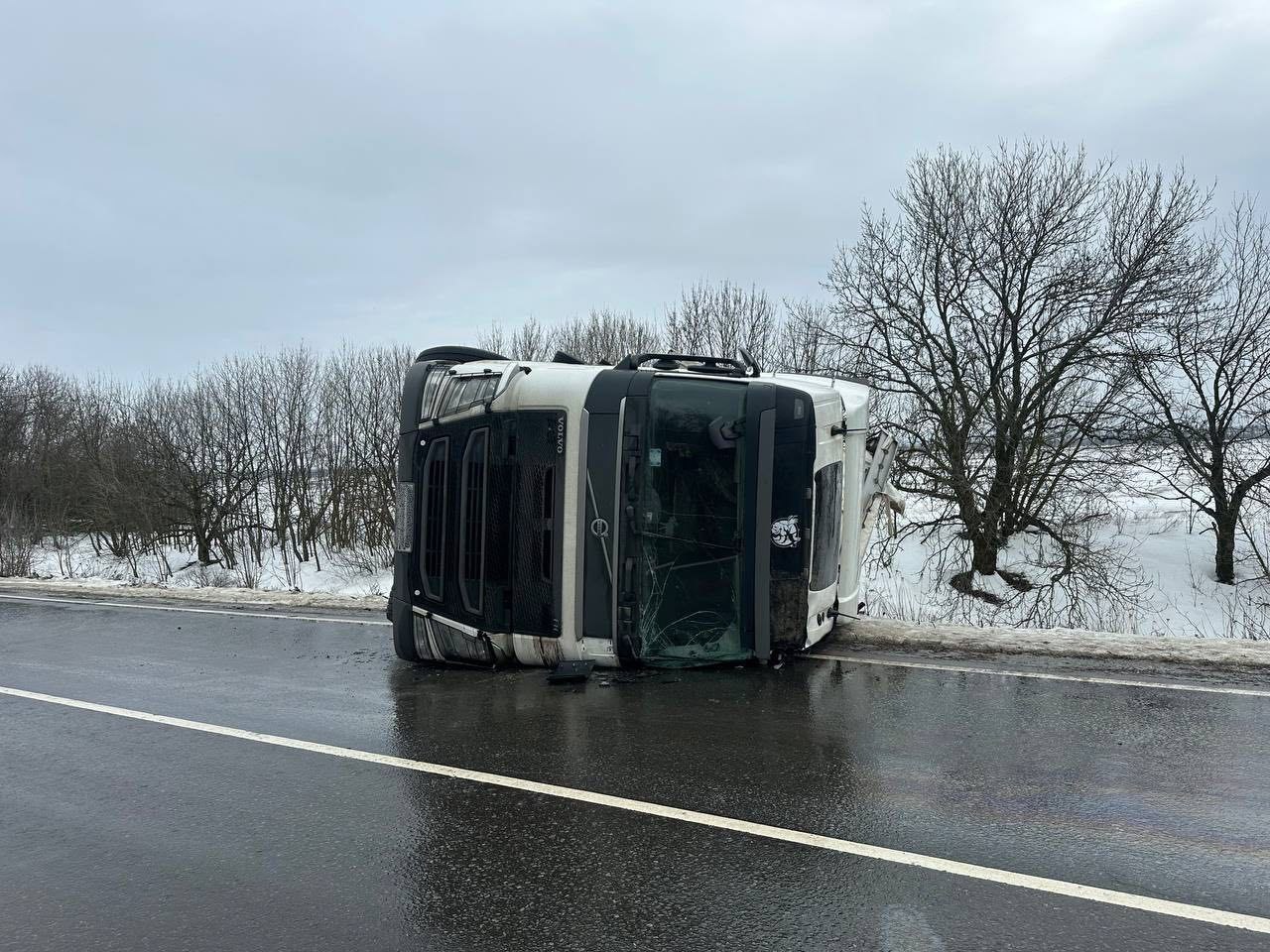111111 Сотрудники дорожной полиции Свердловска помогли водителю фуры выбраться из кабины в непогоду